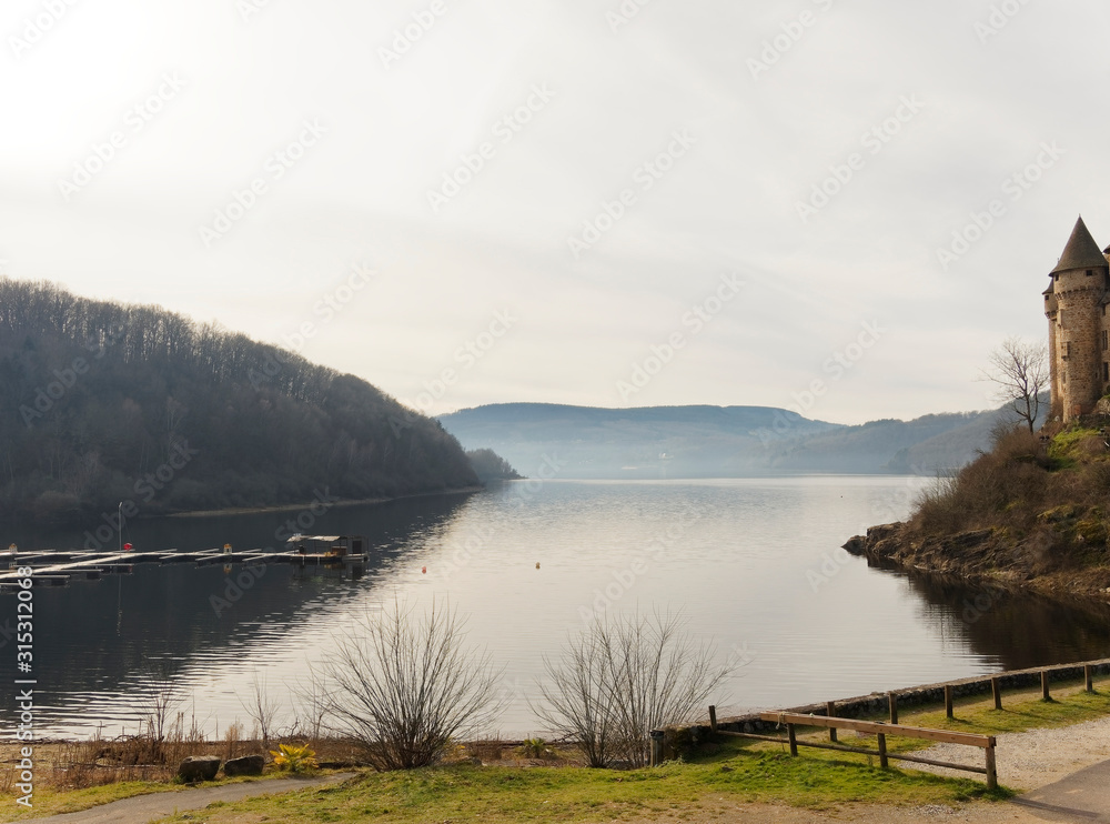 Vue Sur Le Grand Lac De Bort Les Orgues Et Ses Berges Au Bord De La Commune De Lanobre Stock Foto Adobe Stock
